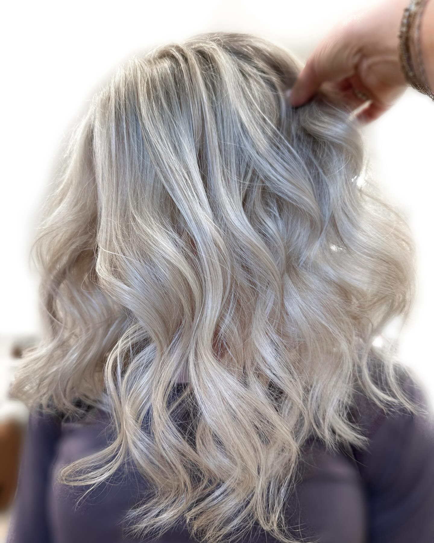 The lightest metallic shades are another option for winter hair colors you may try this season. Platinum blonde needs some shadowing to pop, and an ash blonde base is a perfect choice for this fabulous coloristic solution.