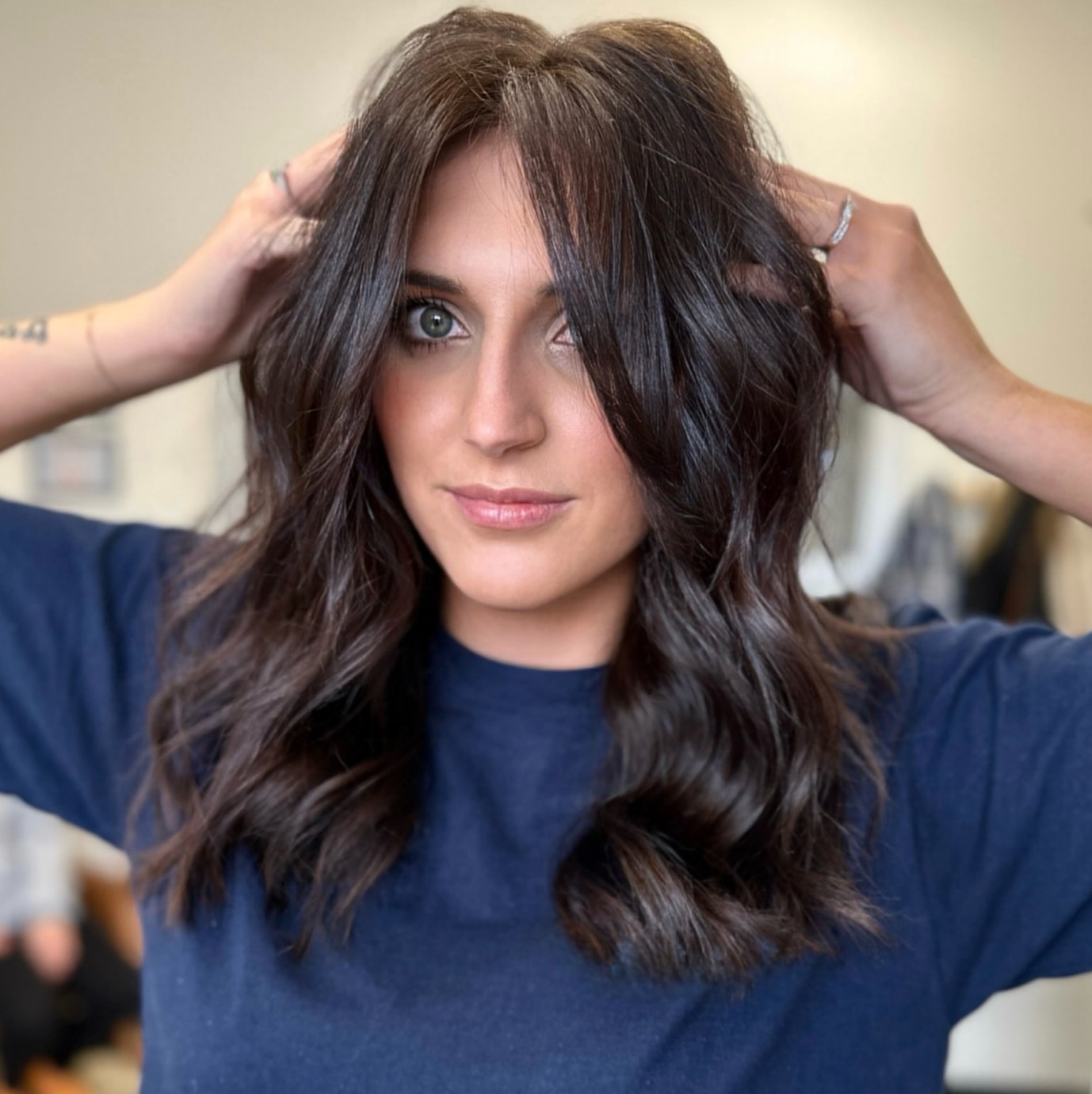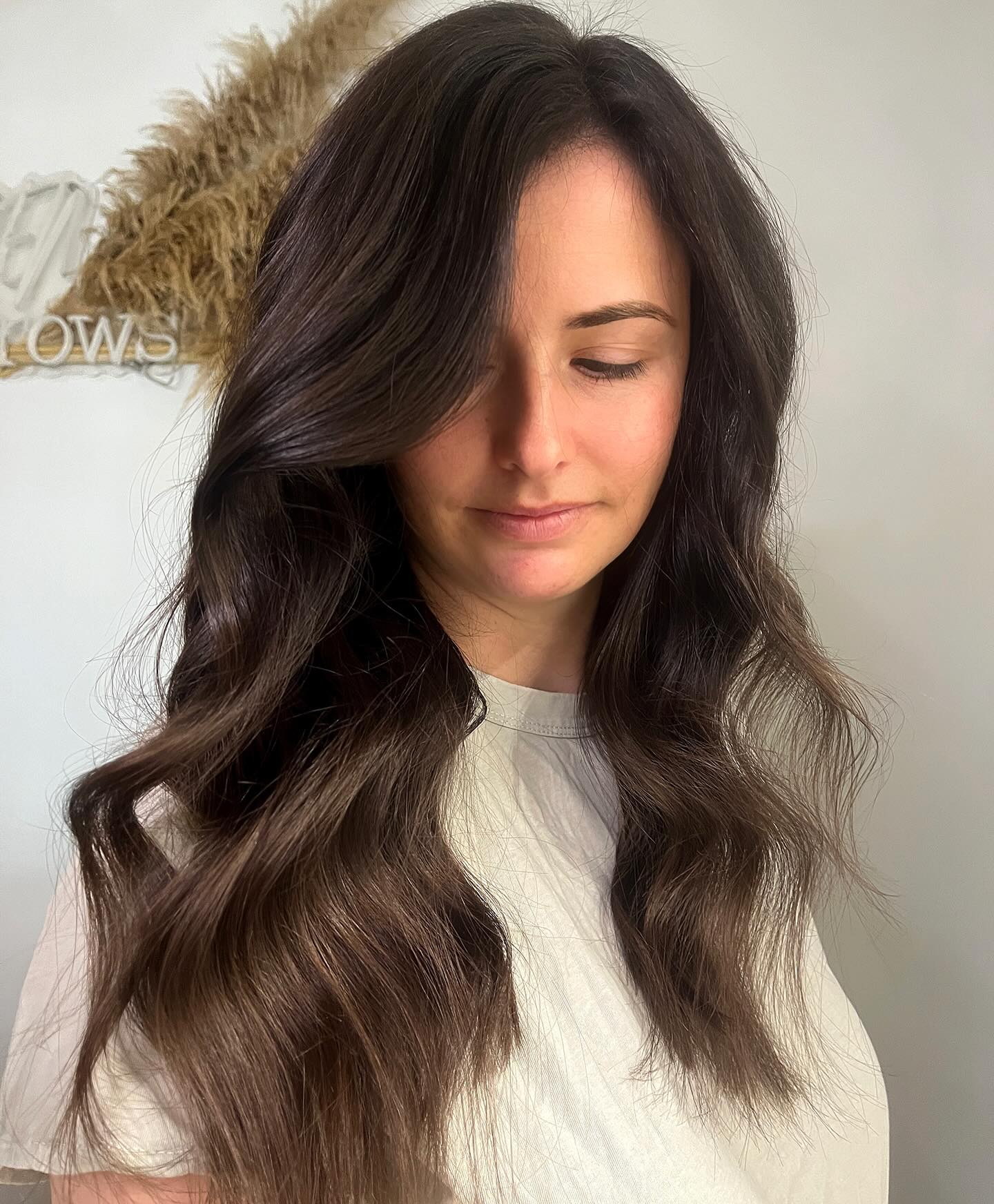2025 is a great time to try out a new look, and if you’re not ready to go too bold, try this rich chocolate brown! The chocolate brown color accented with lighter chestnut tones makes these curls stand out for sure!